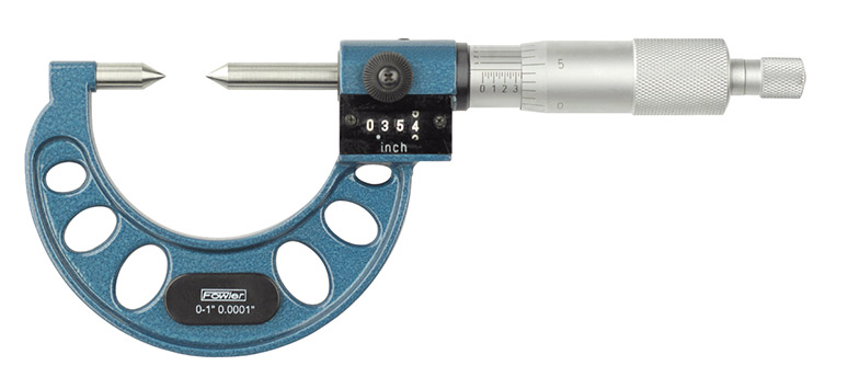 Use Fowler Digital Point Micrometers for quick and accurate comparisons of thread accuracy in screw cutting operations, for taking measurements of small flutes or recesses, grooved trolley wires and for measuring small grooves, keyways and other hard to reach dimensions.