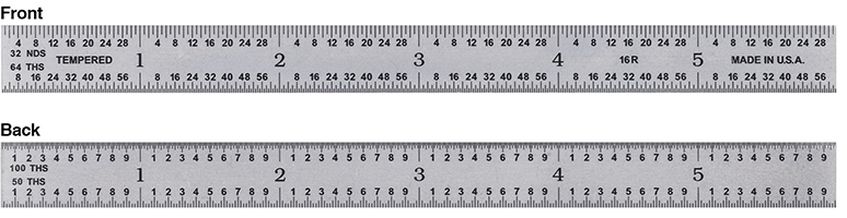 Flexible steel rule with satin-chrome finish Size: 18" Graduation: 16R (32nds, 64ths, 10ths & 100ths) Width: 3/4" Thickness: .020" *Image shown for representational purposes only