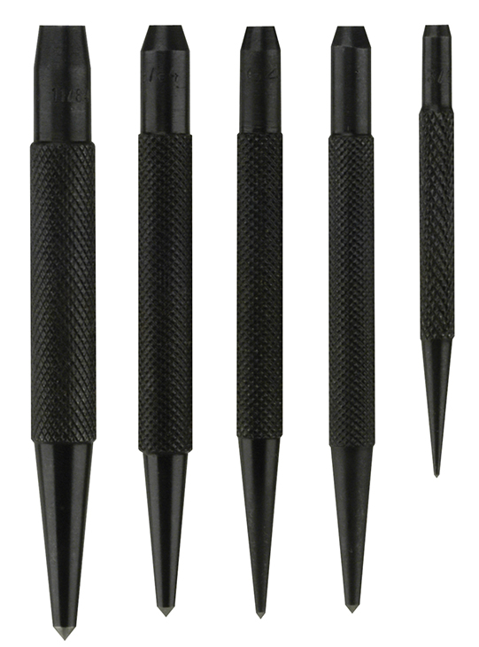 Features: • Housing finished in black nitrate. • Chrome alloy steel; hardened both ends. • Knurled finger grip for easy handling. • All sizes marked for fast and easy use. • Point sizes 3⁄64", 5⁄64", 7⁄64", 9⁄64" and 11⁄64" • Includes fitted case.