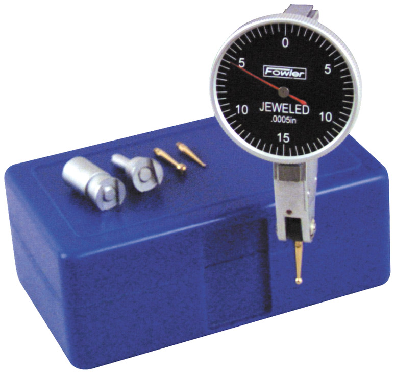 All Fowler Test Indicators include bidirectional constant clockwise rotation, automatic reversal, three dovetail mountings, jeweled movement, two dovetail clamps and a molded case.