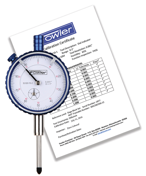 Fowler, 1 inch Whiteface Premium Dial Indicator with Certificate of Calibration, 52-520-129-0