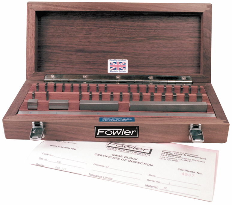 • Fowler Tungsten Carbide Rectangular and Square Gage Block Sets are selected for stability, durability and fine grain structure with a hardness of 70 RC. With this metal, a surface finish of less than .2 millionths (.005 microns) is ensured and gives maximum wringability which is appreciated by users of steel and chromium carbide gages.
