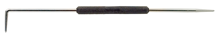 Features: • Fine quality steel blade with fully hardened points • 8-1/2" overall length • Hook point on opposite end • Chrome finished with knurled handle • Replaceable points