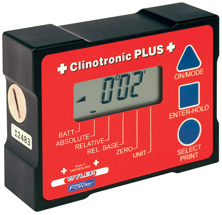 The Fowler Wyler Clinotronic Plus is an electronic level with unsurpassed versatility. It is economically priced, uses a specially designed microprocessor and the well-proven WYLER inclination sensor.