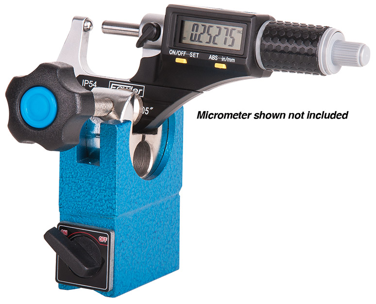 • Holds standard 0-12" micrometers firmly to metal surfaces