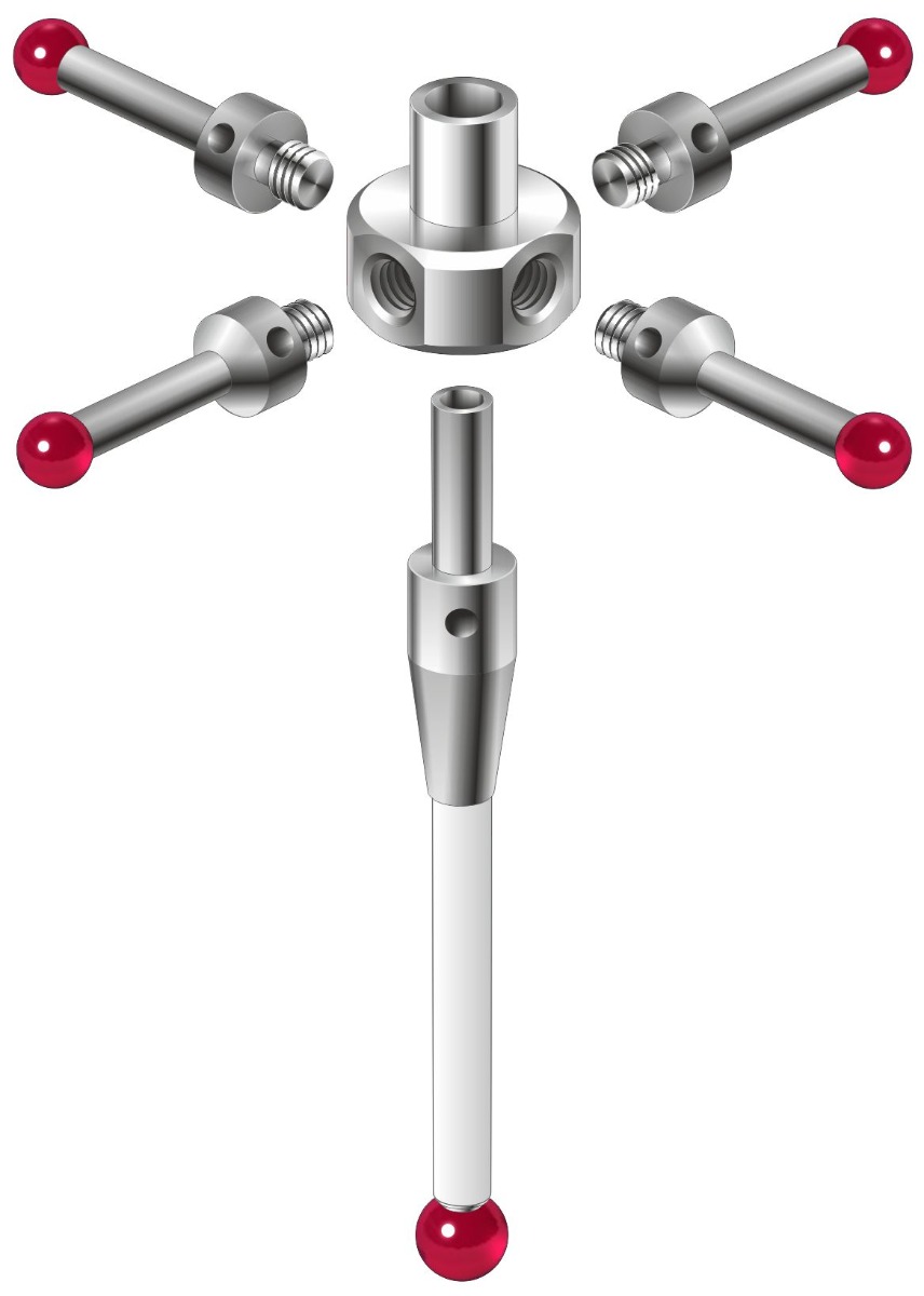 Renishaw, M2 Ø1 mm ruby ball star stylus centre, tungsten carbide stem, L 8.5 mm, EWL 3.5 mm, A-5003-4789