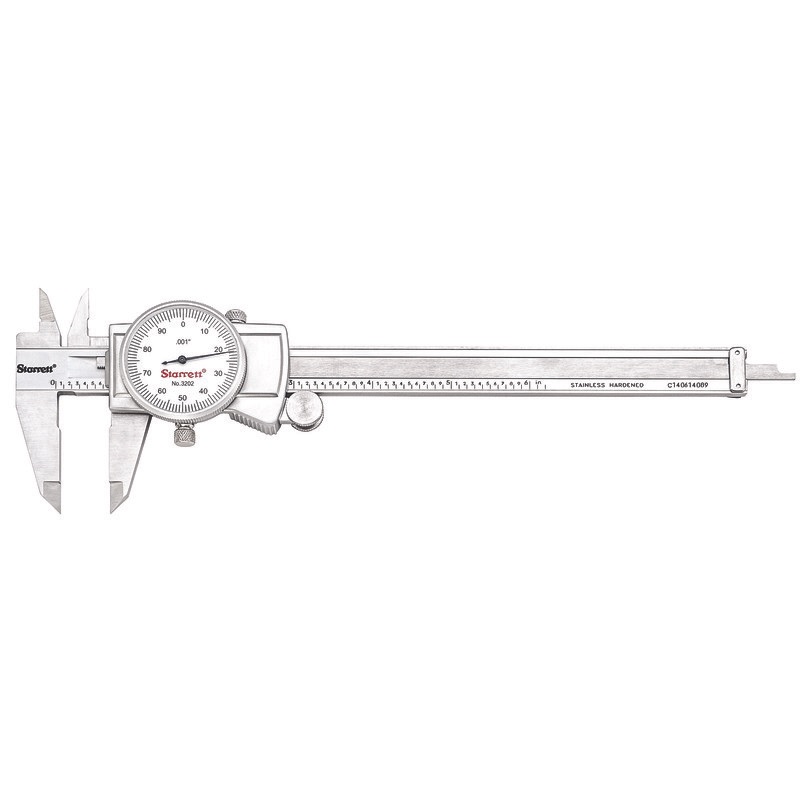The Starrett 3202 Series Dial Calipers provide quick, accurate measurements of outside dimensions, inside dimensions, and depth. The dial caliper is the most versatile precision hand tool on the market and has been the first choice of metal working professionals for decades. This series features 0-6" range and .001" graduations, in Fitted Case